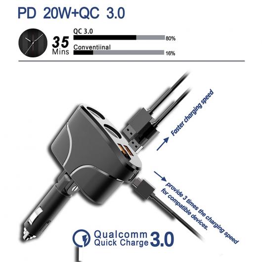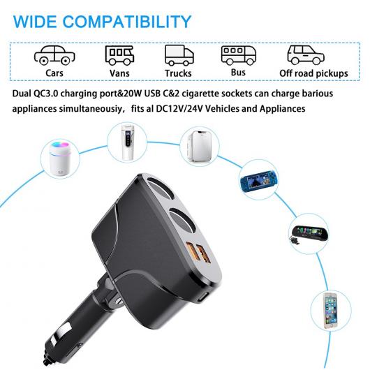 シガーソケット ソケット スプリッタ チャージャー デュアル PD USB QC 3.0 クイック 充電 12V オート シガーソケット ソケット パワー アダプタ ブラック AL-RR-6533 AL