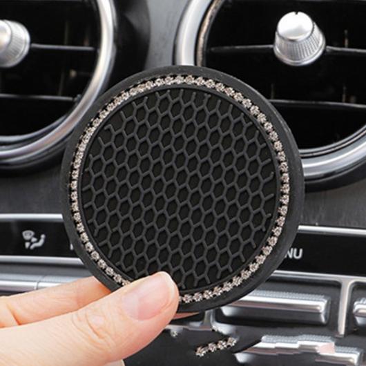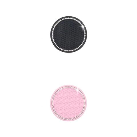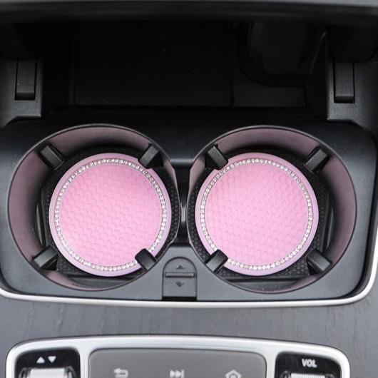 ドリンクホルダー パッド 滑り止め ラインストーン 装飾 オート インテリア カップ ボトル ダスト プルーフ ラバー マット ブラック・ピンク AL-RR-6723 AL