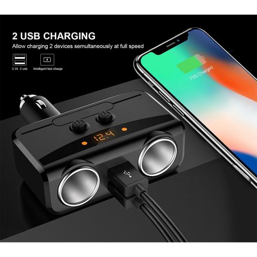 アクセサリー 12V 24V シガーソケット ソケット USB 1 適用: 3 チャージャー LED ディスプレイ USB 電話 チャージャー ブラック AL-RR-6808 AL