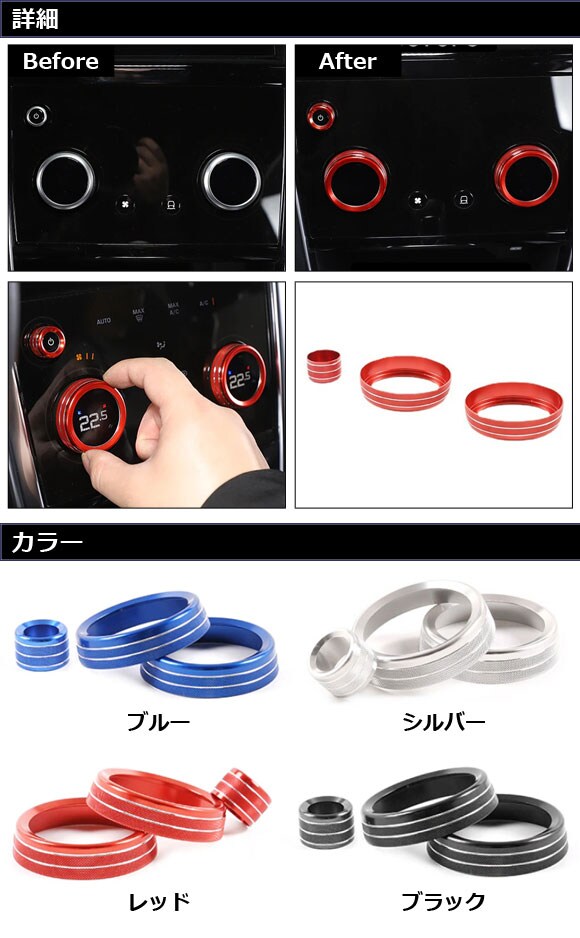 エアコンダイヤルカバー ランドローバー ディスカバリースポーツ LC2XC/LC2NC/LC2ND 2019年11月~ シルバー アルミ製 入数:1セット(3個) AP-IT2483-SI