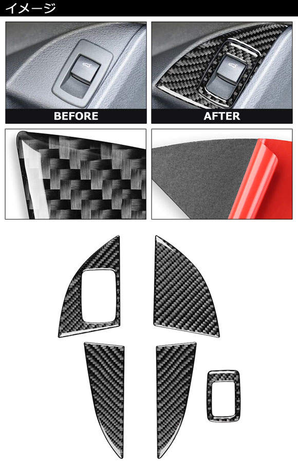 バックドアスイッチカバー BMW X2 F39 2018年~ カーボン調 左ハンドル用 入数:1セット(5個)