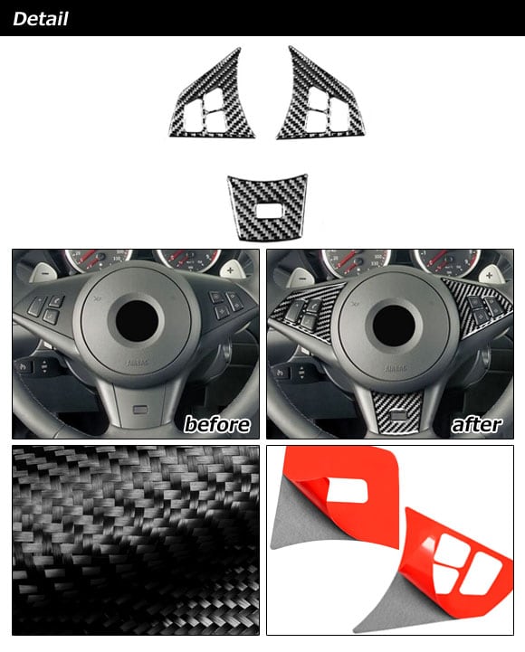 ステアリングステッカー BMW M6 E63/E64 2005年09月~2012年03月 ブラックカーボン カーボンファイバー製 入数:1セット(3個) AP-IT2486