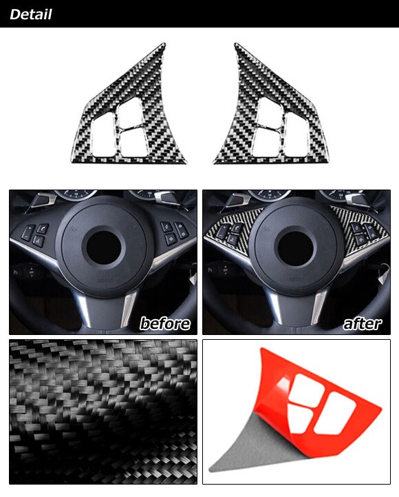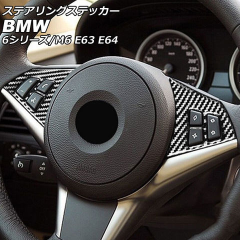 ステアリングステッカー BMW M6 E63/E64 2005年09月~2012年03月 ブラックカーボン カーボンファイバー製 入数:1セット(2個)