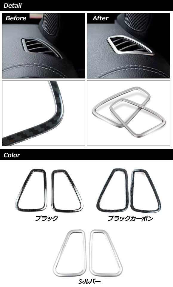エアコンダクトカバー メルセデス・ベンツ Aクラス W177/V177 A180,A200,A250 2018年10月~ シルバー ステンレス製 入数:1セット(2個)