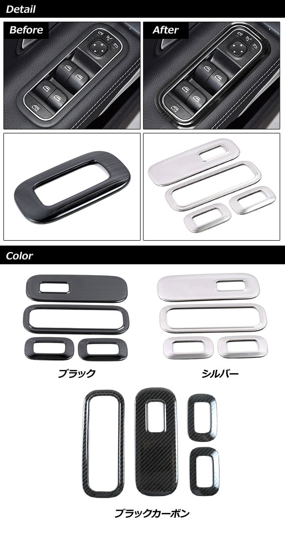 パワーウインドウスイッチカバー メルセデス・ベンツ Aクラス W177/V177 A180,A200,A250 2018年10月~ ブラックカーボン ステンレス製 入数:1セット(4個)