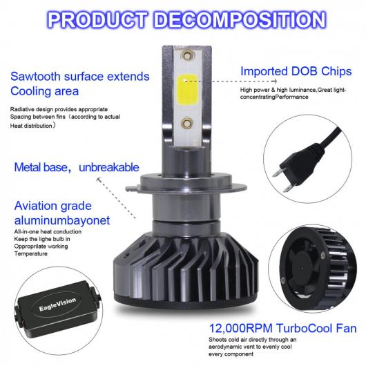 1 ペア H7 EV8 60W 8000LM 6500K DOB LED ヘッドライト キット 自動車 フォグランプ HI/LO ライト バルブ AL-RR-7758 AL