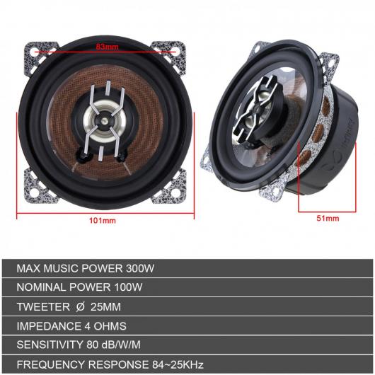 2ピース 4インチ 300W 同軸 オート オーディオ ミュージック ステレオ フル レンジ 周波数 Hi-Fi スピーカー AL-RR-7765 AL