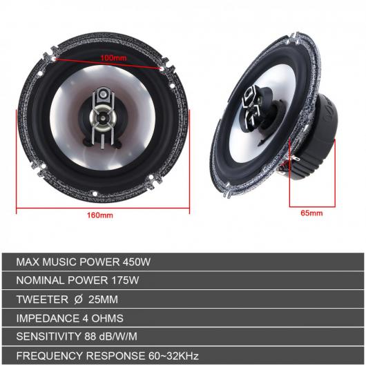1ペア 6インチ 450W 3 ウェイ 同軸 オート オーディオ ミュージック ステレオ フル レンジ 周波数 Hi-Fi スピーカー AL-RR-7773 AL