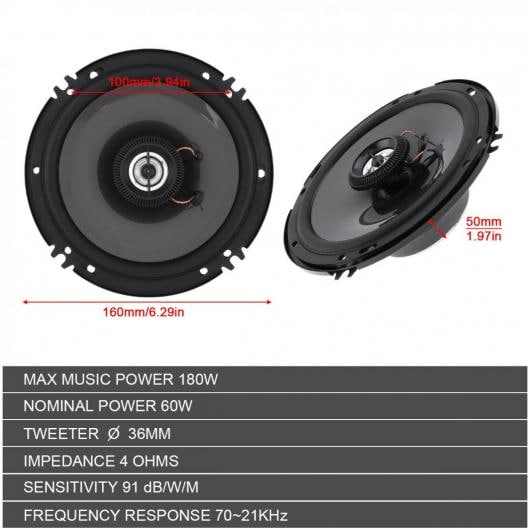 2ピース 6インチ 91DB 2 ウェイ 同軸 スピーカー ユニバーサル オート オーディオ ステレオ フル レンジ 周波数 Hi-Fi 適用: オーディオ システム AL-RR-8166 AL