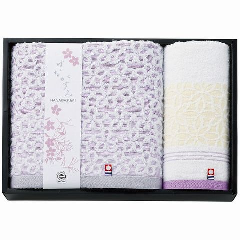 ハナガスミ タオルギフト 日用品雑貨 今治タオル バスタオル ハンドタオル 紫 PURPLE