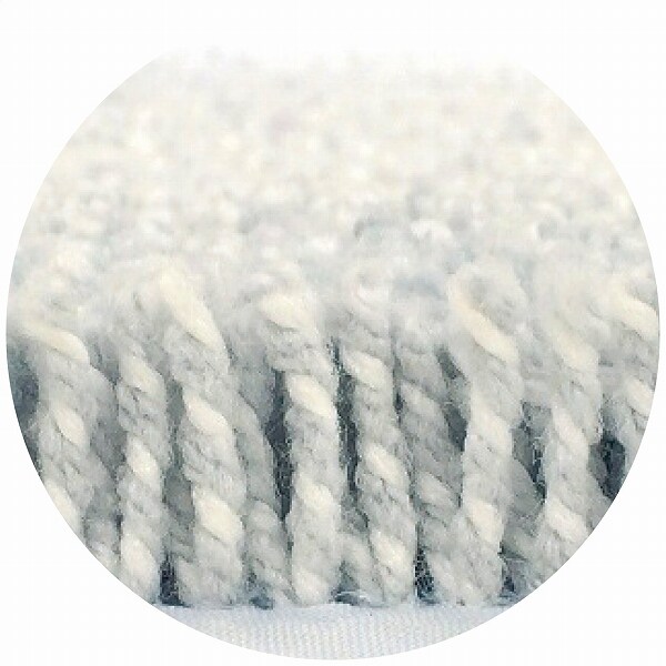 吸水速乾のポリエステル糸と抗菌防臭のアクリル糸2本の糸をツイストして1本に組み合わせることでへたりに強い弾力性のあるコシが生み出され、さらっとした足触りを実現しました。