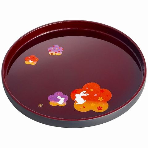 紀州塗 宴うさぎ 溜塗丸盆 尺丸 0094004(1120-047)