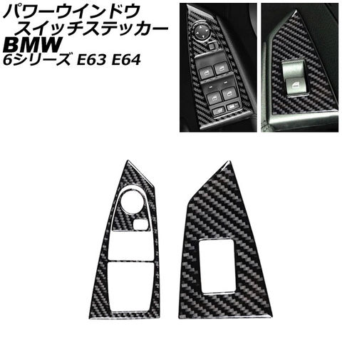 パワーウインドウスイッチステッカー BMW 6シリーズ E63/E64 2003年10月~2011年01月 ブラックカーボン カーボンファイバー製 左ハンドル用 入数:1セット(3個) AP-IT2571-BKC