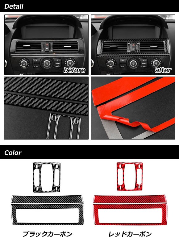 センターエアコンダクトステッカー BMW 6シリーズ E63/E64 2003年10月~2011年01月 レッドカーボン カーボンファイバー製 入数:1セット(3個) AP-IT2584-RDC