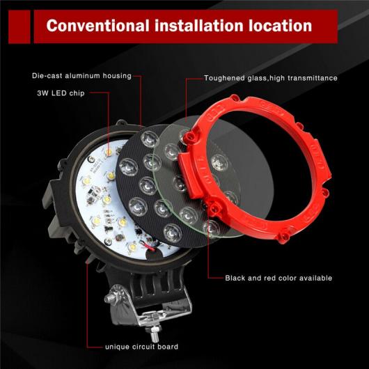 1ピース 7インチ LED ワーク ライト 17LED フォグ ライト オフ ロード スポット LED ライト レッド ラウンド ドライビング フォグ ヘッドライト 適用: トラック オフ ロード 1ピース AL-SS-0311 AL