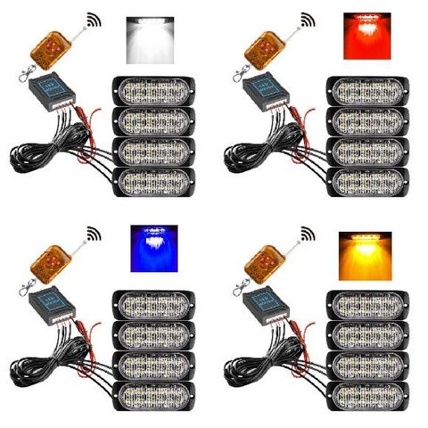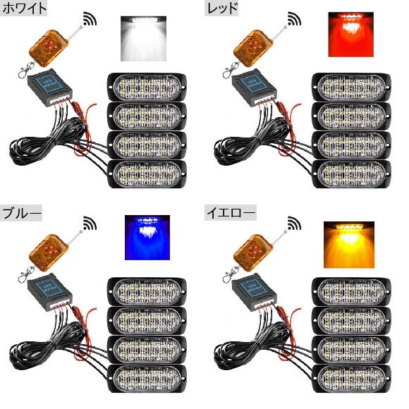 DC12-24V ストロボ ライト リモート コントロール 4LED サイド マーカー ライト グリル ライト 16 モード ワーニング エマージェンシー ライト 適用: トラック ホワイト~イエロー AL-SS-0429 AL