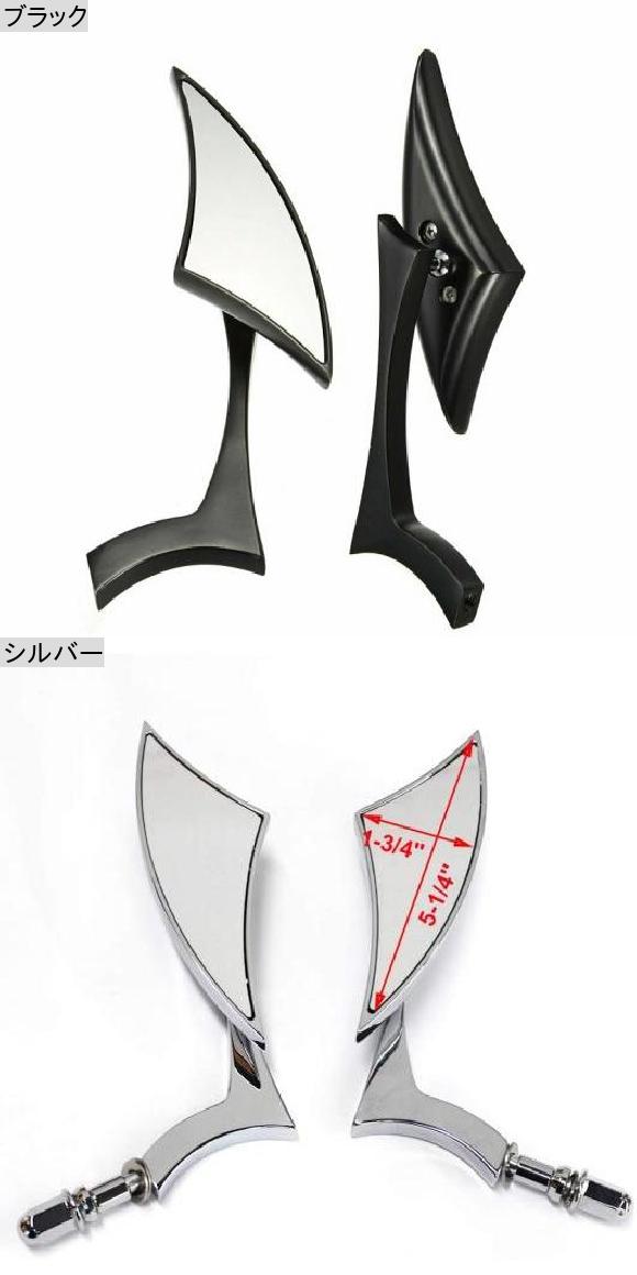 2ピース ブラック カスタム オートバイ ブレイド スタイル バックミラー サイド ミラー 適用: ハーレー レーサー チョッパー ブラック・シルバー AL-SS-0720 AL