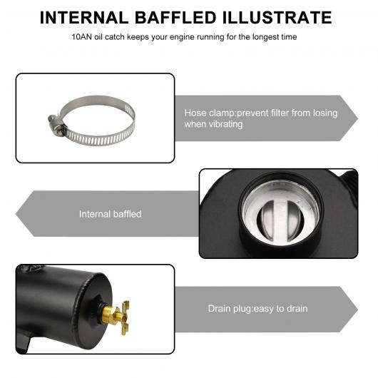 ユニバーサル AN10 アルミ バッフル エンジン オイル キャッチ CAN 750ML ツイン ポート ブリーザー フィルター キット フューエル タンク ブラック AL-SS-0830 AL