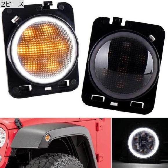 LED サイド マーカー ライト ホワイト DRL アンバー LED ウインカー ライト フェンダー シグナル パーキング ライト 適用: ジープ/JEEP ラングラー JK JKU 2007-2017 2ピース AL-SS-1465 AL