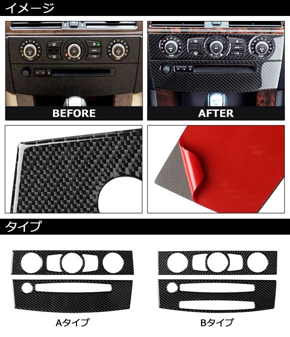 コンソールパネルカバー BMW 5シリーズ E60 前期 2003年~2007年 ブラックカーボン カーボンファイバー製 Bタイプ 入数:1セット(2個) AP-IT2654-B