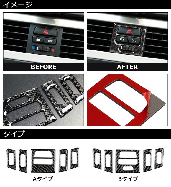 センターエアコンパネルカバー BMW 3シリーズ E90/E92/E93 2005年~2012年 ブラックカーボン カーボンファイバー製 Bタイプ 入数:1セット(5個) AP-IT2653-B