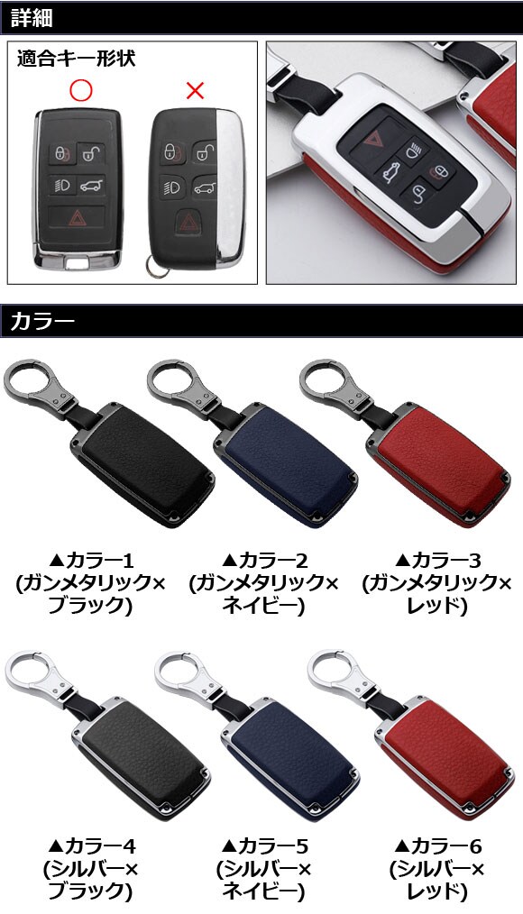 キーケース カラー1 亜鉛合金+レザー ランドローバー/ジャガー 汎用 キーホルダー付 AP-AS749-COL1