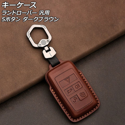 キーケース ダークブラウン 5ボタン 本革 ランドローバー 汎用 キーホルダー付き AP-AS750-DBR