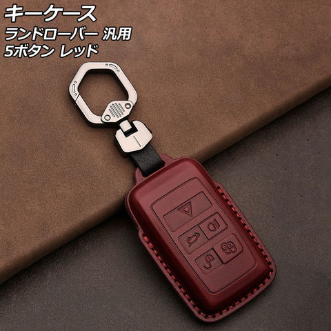 キーケース レッド 5ボタン 本革 ランドローバー 汎用 キーホルダー付き AP-AS750-RD