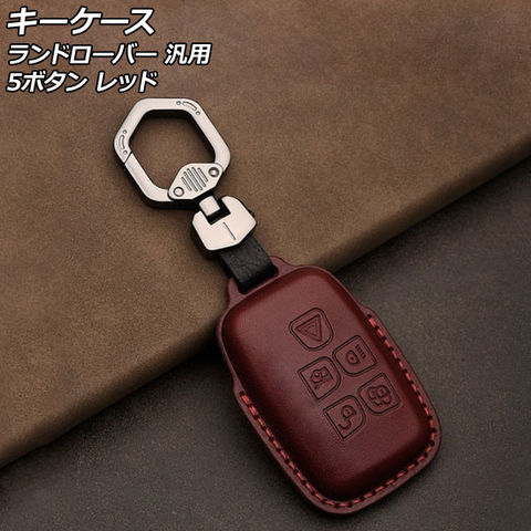 キーケース レッド 5ボタン 本革 ランドローバー 汎用 キーホルダー付き AP-AS752-RD