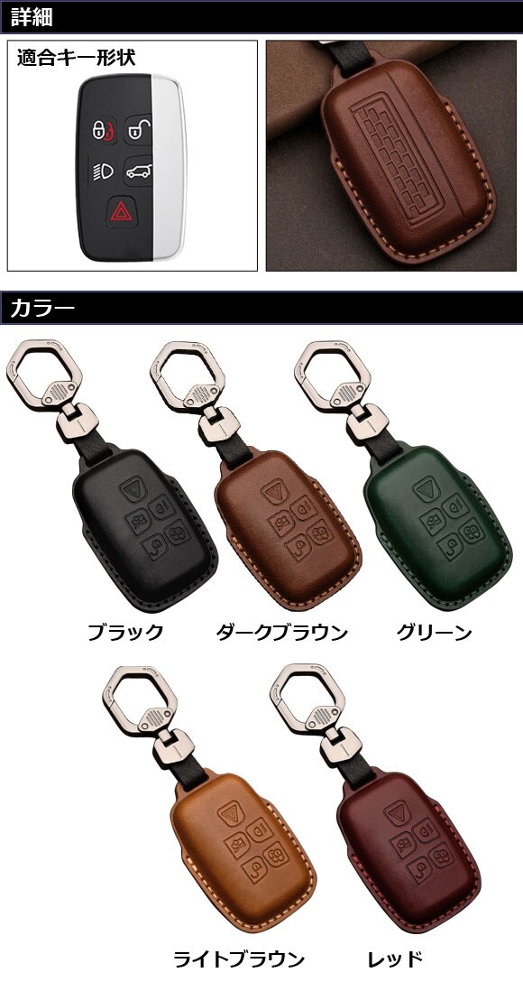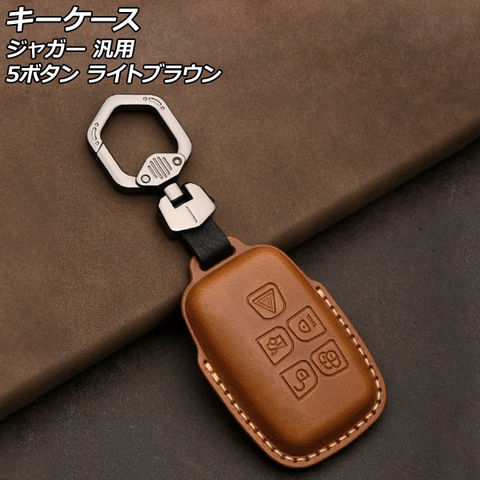 キーケース ライトブラウン 5ボタン 本革 ジャガー 汎用 キーホルダー付き AP-AS753-LBR