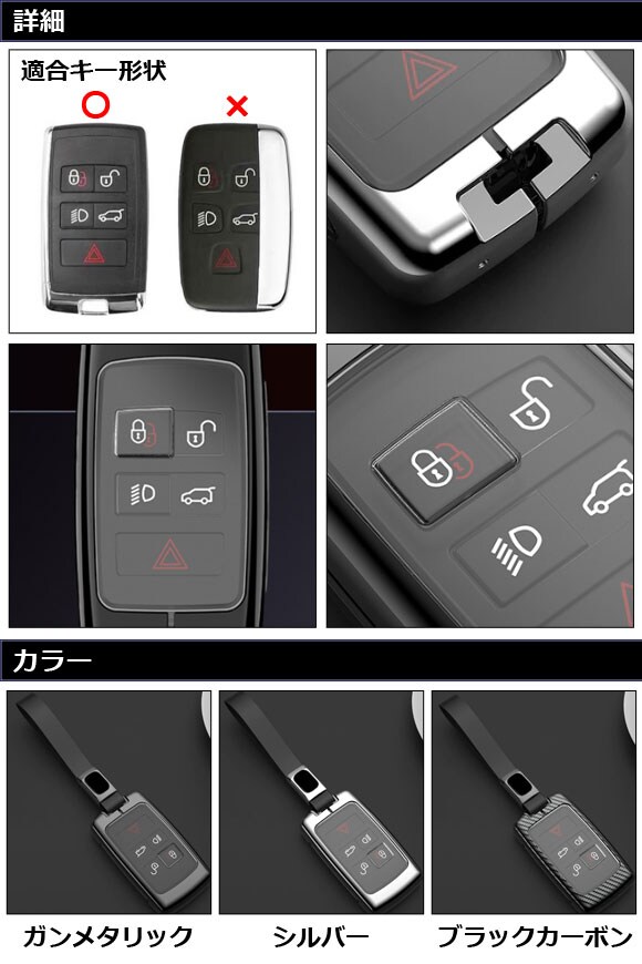 キーケース ブラックカーボン 亜鉛合金+TPU製 ランドローバー/ジャガー 汎用 ストラップ付き AP-AS760-BKC