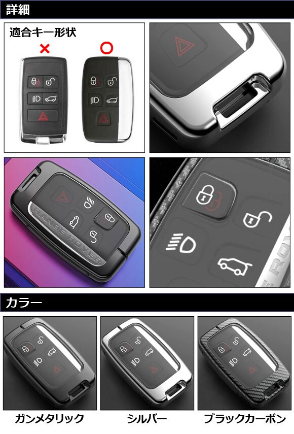 キーケース ブラックカーボン 亜鉛合金+TPU製 ランドローバー/ジャガー 汎用 AP-AS761-BKC