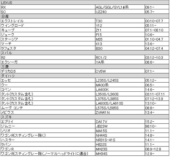 トヨタ/レクサス/ニッサン/スバル/ミツビシ/ダイハツ/スズキ 汎用