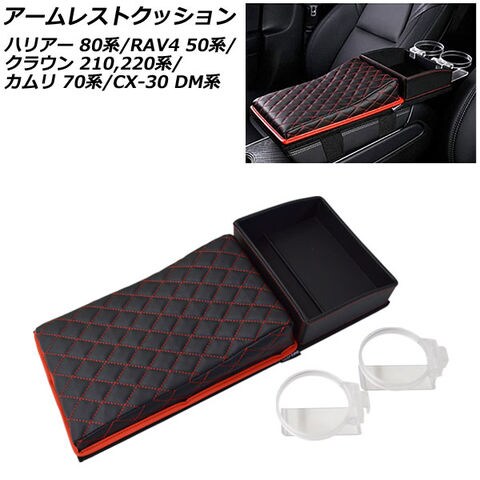 アームレストクッション トヨタ RAV4 50系 2019年04月~ ブラック×レッドステッチ 収納ボックス ドリンクホルダー付き