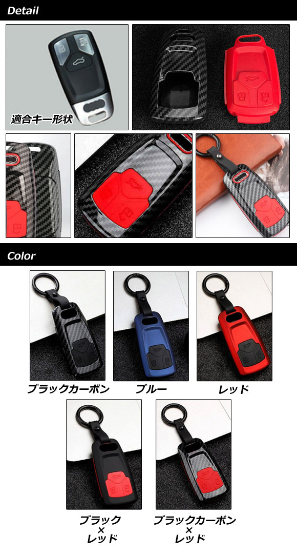 キーケース アウディ Q7 4MCYRS/4MCYRA/4MCRES/4MCREA/4MDCBS/4MDCBA/ 2016年03月~ レッド 3ボタン ABS+シリコン製