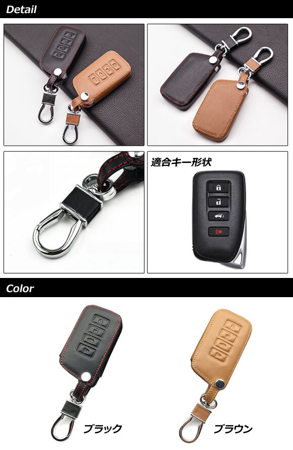 キーケース レクサス IS250/IS350/IS300h AVE30/AVE35/GSE30/GSE31/GSE35/ASE30/USE30 2013年05月~ ブラウン 4ボタン レザー製 カラビナ付き