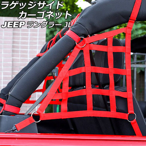 ラゲッジサイドカーゴネット ジープ ラングラー JL20L/JL36L 2018年11月~ レッド ウェビング素材/ABS製 4ドア用 入数:1セット(2個) AP-AS825-A-RD