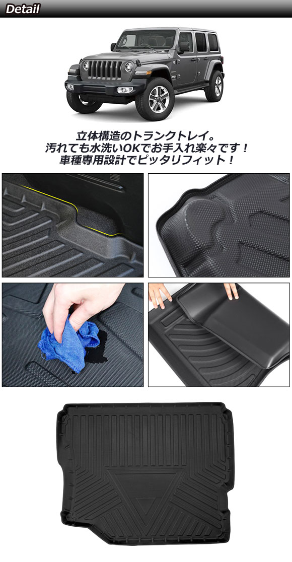 ラゲッジマット ジープ ラングラー JL20L/JL36L サブウーハー無し 4ドア用 2018年11月~ ブラック TPE素材 立体構造 防水仕様 AP-IT2709