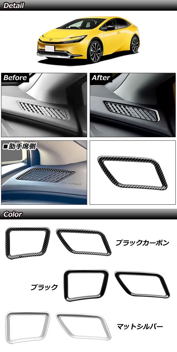 エアコンダクトカバー ダッシュボード用 トヨタ プリウス ZVW60/ZVW65/MXWH60/MXWH61/MXWH65 2023年01月~ マットシルバー ABS製 入数:1セット(2個) AP-IT2737-MSI