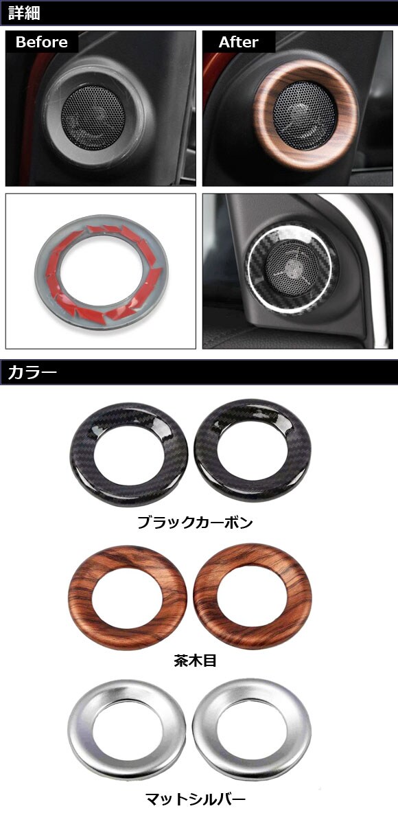 ドアスピーカーリングカバー スピーカーリングカバー ドアスピーカーリング スピーカーリング スピーカーフレーム スピーカーカバー スピーカーグリルカバー スピーカーリングガーニッシュ スピーカートリム サイドドア サイド ドア フロント 運転席 助手席 前 前方 スピーカー ピラー 三角ピラー Aピラー 内ピラー ツイーター リング フレーム 縁 ふち パネル カバー ガーニッシュ リム トリム メッキ メッキパーツ 保護 プロテクト プロテクター 傷予防 傷付き防止 内装 インテリア パーツ ABS ABS樹脂 樹脂 ブラック カーボン 黒