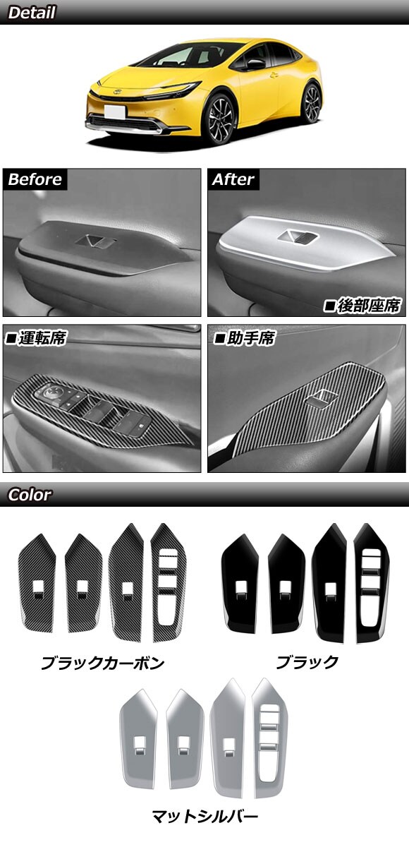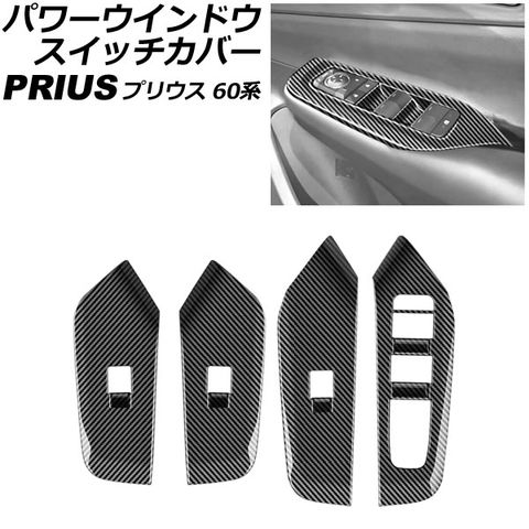 パワーウインドウスイッチカバー トヨタ プリウス ZVW60/ZVW65/MXWH60/MXWH61/MXWH65 2023年01月~ ブラックカーボン ABS製 入数:1セット(4個) AP-IT2758-BKC