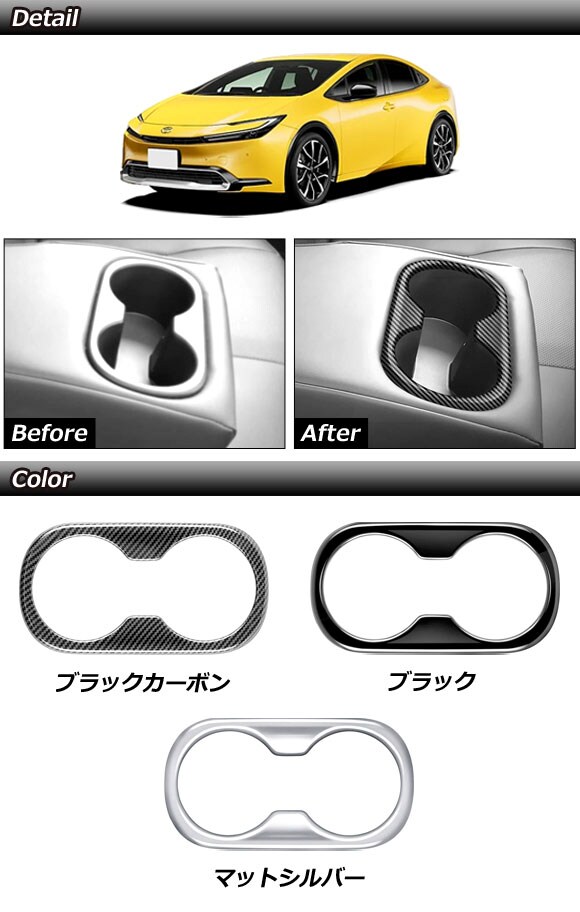 リアカップホルダーカバー トヨタ プリウス ZVW60/ZVW65/MXWH60/MXWH61/MXWH65 2023年01月~ マットシルバー ABS製 AP-IT2761-MSI