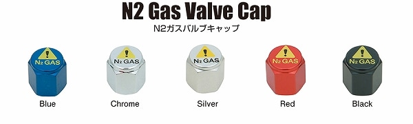 近年、空気の代わりに窒素ガス(N2)を注入することが話題になっています。これは窒素ガスが空気よりも分子構造が大きいため、タイヤの分子間を抜けていきにくいからです。しかしただ入れただけではメンテの時に混乱を招く恐れがあります。そこでその窒素ガスを注入したタイヤである証のバルブキャップが必要です。その存在を主張するファッション性も兼ね備えたバルブキャップです。