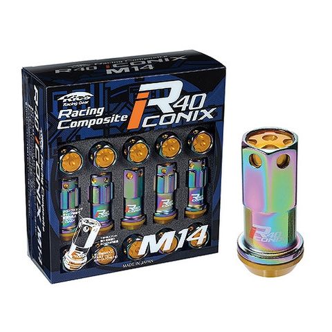 協永産業/KYO-EI レーシングコンポジットR40 アイコニックス ロック&ナットセット(アルミ製キャップ) ネオクロ M14×P1.5 キャップカラー:ゴールド 入数:1セット(ナット16個/ロック4個) RIA-14NA