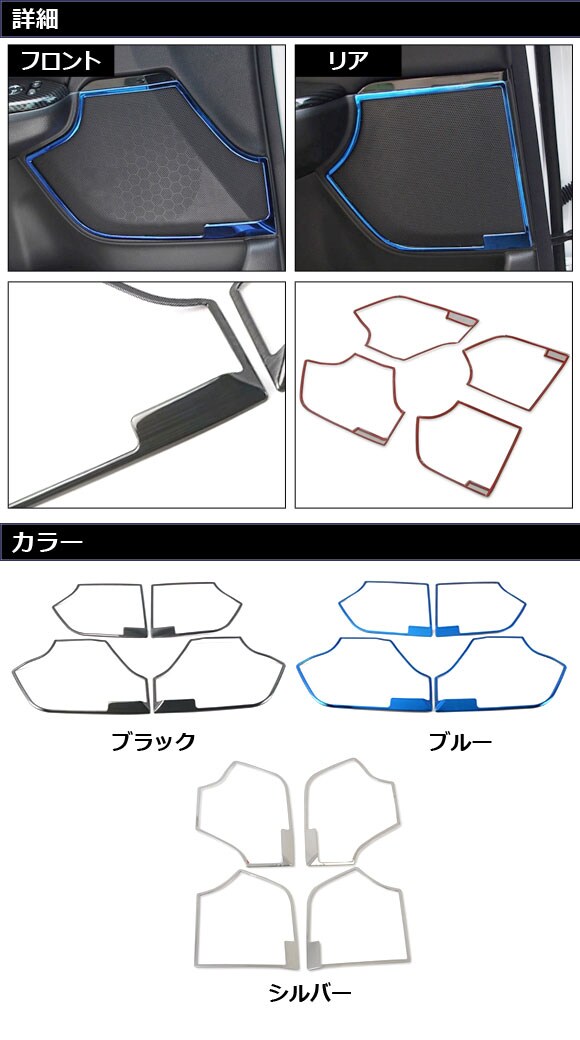 スピーカーリングカバー ドアスピーカーリング スピーカーリング スピーカーフレーム スピーカーカバー スピーカーグリルカバー スピーカーリングガーニッシュ スピーカートリム サイドドア サイド ドア フロント リア リヤ リアー リヤー 下部 下 足元 ドアキック スピーカー グリル リング フレーム 縁 ふち パネル カバー ガーニッシュ リム トリム メッキ メッキパーツ プロテクト プロテクター 傷予防 傷付き防止 保護 ガード ステンレス ステン 鋼 内装 インテリア ドレスアップ カスタム アクセサリー BLACK 黒 ヘアライン