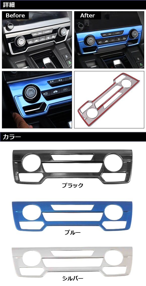 エアコンパネルカバー ホンダ CR-V RW1/RW2/RT5/RT6 ハイブリッド可 シートヒータースイッチ有り車 2018年08月~2022年12月 ブラック ステンレス製 AP-IT2819-BK