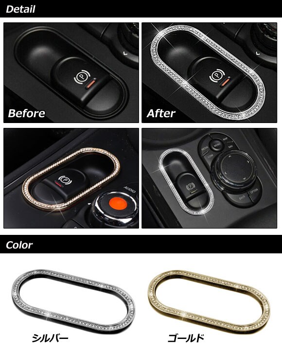 サイドブレーキカバー ブレーキカバー パーキングブレーキカバー ブレーキガーニッシュ パーキングブレーキガーニッシュ サイドブレーキガーニッシュ ブレーキ 駐車 サイド サイドブレーキ ハンドブレーキ パーキング パーキングブレーキ ノブ ハンドル メッキ メッキパーツ カバー ガーニッシュ リム トリム スイッチ ボタン フレーム ラインストーン ガラスストーン ライン ストーン グリッター キラキラ 豪華 クリスタル ガラス 金 GOLD デコ 車内 内装 内装パーツ パーツ インテリア インテリアパーツ カスタム カスタマイズ