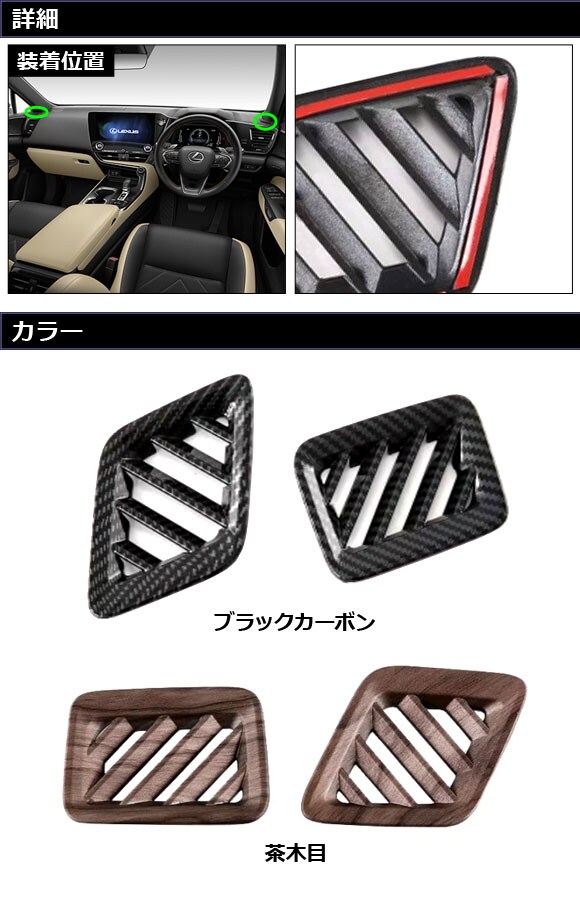 エアコンダクトカバー ダッシュボード用 レクサス NX250/NX350/NX350h/NX450h+ 20系 2021年11月~ ブラックカーボン ABS製 入数:1セット(2個) AP-IT2852-BKC