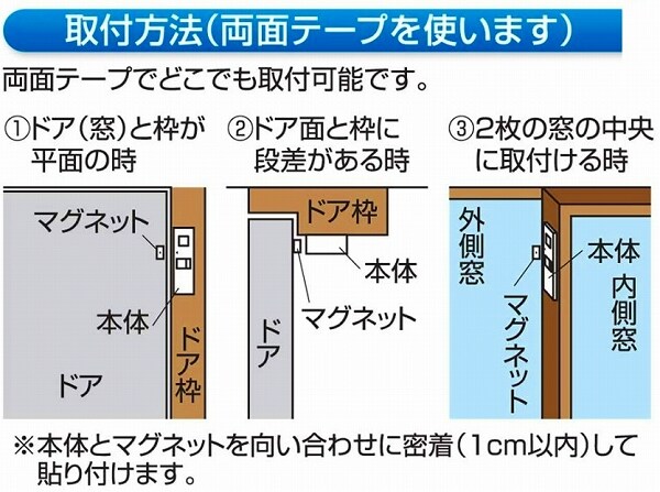 ・マグネットセンサーが、ドアや窓が開くのを感知してチャイムやアラームを鳴らします。