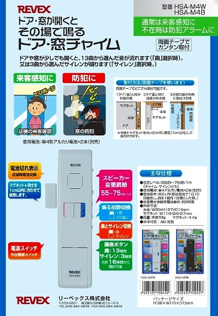 リーベックス/REVEX ドア・窓チャイム HSA-M4B